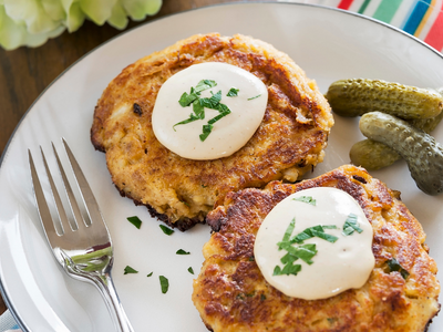 Almond meal and a few shrimp ground into a sticky paste hold these crab cakes together without overpowering the crab’s natural sweetness. Use the highest quality crab you can and be sure to pick out any shell.