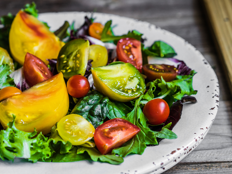 This is an ode to the last of the season’s tomatoes. A perfect summer dish bursting with flavors and nutrients. Please note: those with SIBO should limit salads to one serving.